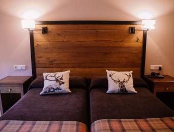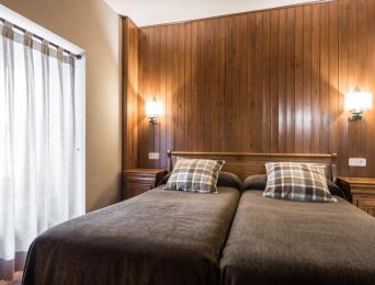 Confortables habitaciones para dos personas decoradas con estilo típico de montaña y con baño totalmente equipado. La habitación dispone de televisión, escritorio, armario, calefacción y conexión wif...
